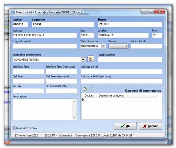 Per aggiungere o modificare un contatto utilizzare i pulsanti di inserimento, rettifica e cancellazione.