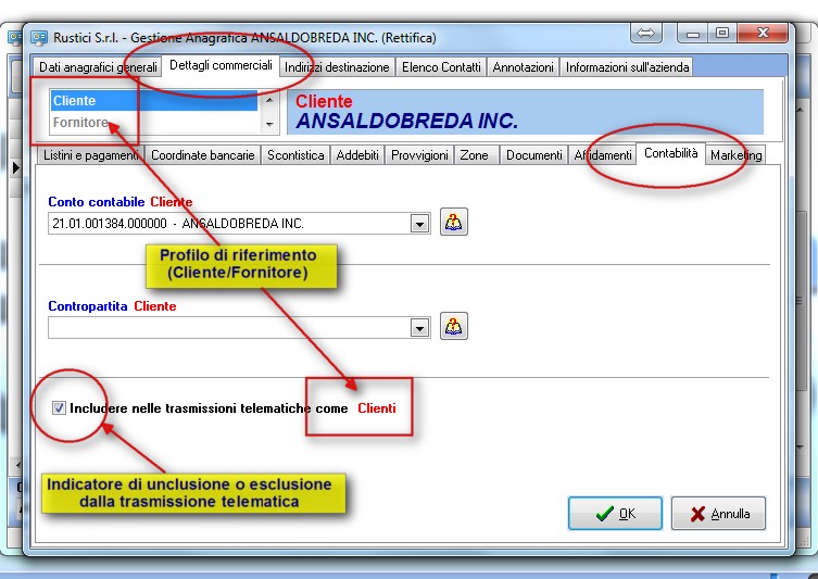 Nella scheda “Contabilità” dell’Anagrafica Generale: