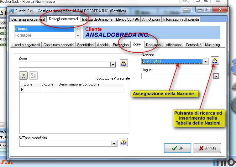 Nella scheda “Zone” dell’Anagrafica Generale selezionare la “Nazione” di riferimento.