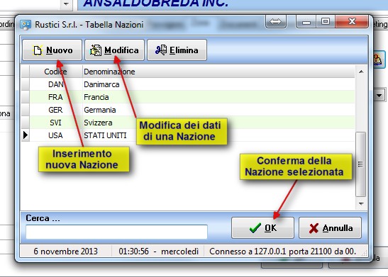 Dalla lista aggiornata nella Tabella Nazioni selezionare la nuova Nazione e premere il pulsante OK per assegnarla al Nominativo.