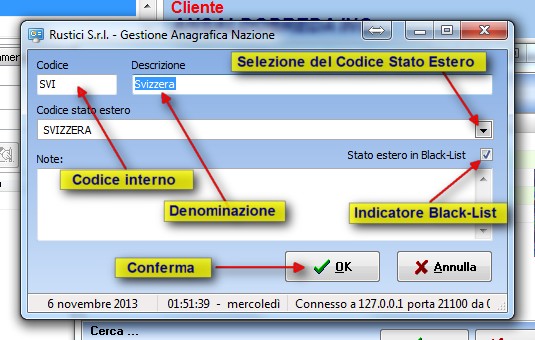 Nella scheda di impostazione della Nazione inserire i seguenti dati: