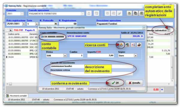 4. Facoltativamente modificare la descrizione che apparirà nella scheda contabile