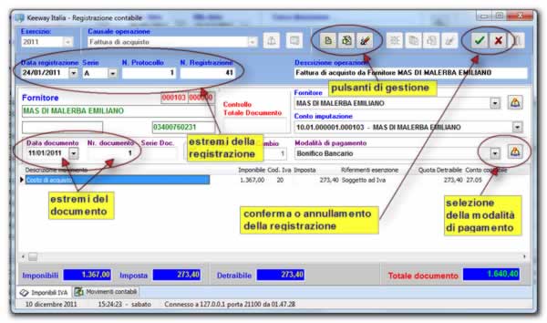 La registrazione di un documento di acquisto o vendita viene eseguire mediante l’inserimento degli imponibili indicati nel riepilogo IVA del documento cartaceo da registrare. I relativi movimenti contabili verranno generati automaticamente.