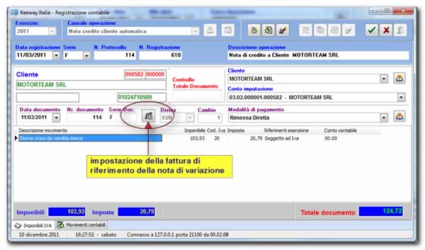 Registrando un nuovo documento selezionare per prima cosa la causale appropriata come indicato per le registrazioni di prima nota.