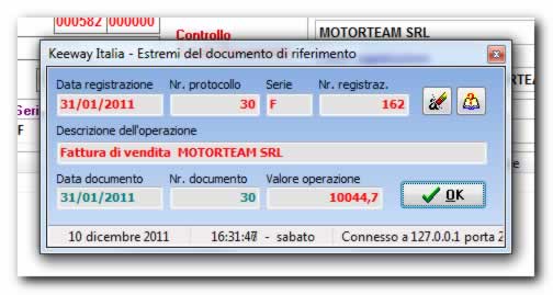 Una volta individuata la fattura da associare al documento confermare con OK.